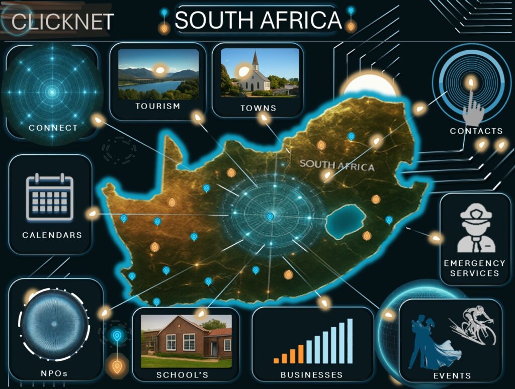 Welcome to ClickNet SA, your ultimate gateway to discovering South Africa’s towns, communities, and businesses. Our mission is simple: to make local information easily accessible, reliable, and useful for everyone—residents, visitors, and entrepreneurs alike.